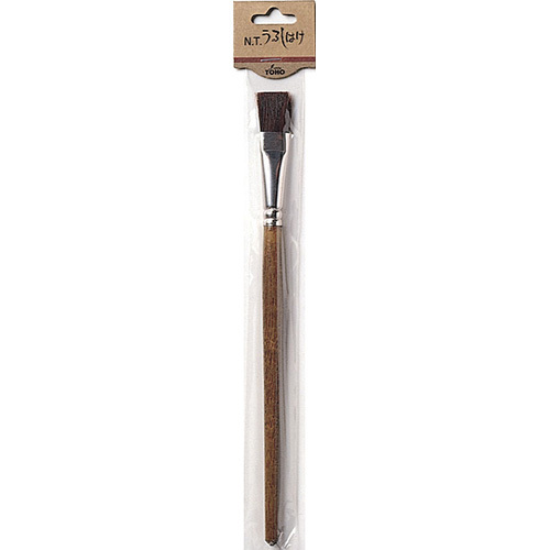 うるしはけは馬足毛を使用しており、毛腰が強いのが特徴です。「特製うるし」など少し粘度の高い塗料をのばしながら塗るのに適しております。