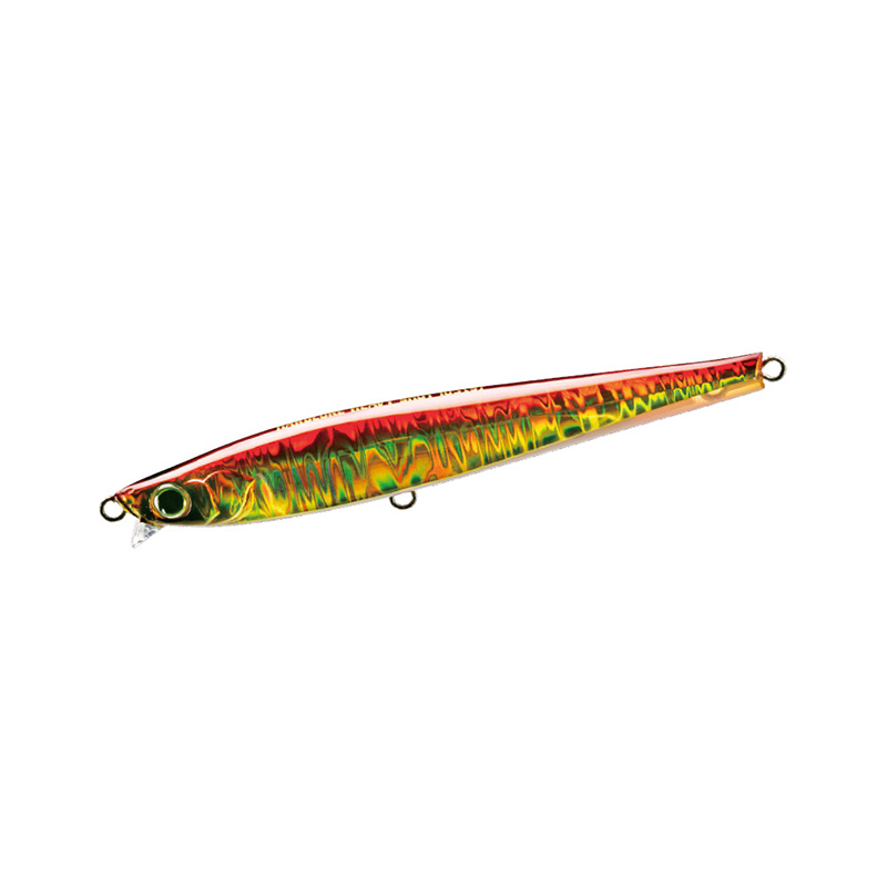 通常のシンキングペンシルとは異なり、極小リップがしっかり水を掴むので、ハイスピードでも水面直下をリトリーブ可能。またラインが横風に取られる状況下や足場の高い位置からでも、浮き上がりを抑え狙い通りのコースを引いてくる事が可能。前進しながらのローリングフォール(シミーフォール)でバイトを誘発。逆風でも負けない圧倒的な遠投性能。