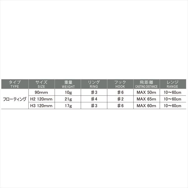 サイズ:90mm ウェイト:10g Ring:#3 Hook:#6