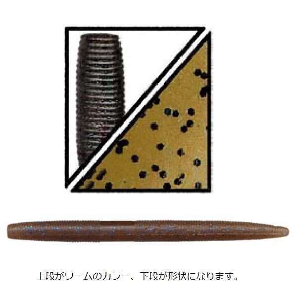 2”〜7”のヤマセンコーは大きさが違うだけでほぼ同じデザインです。バスのサイズや水の透明度、フィッシングプレッシャーやバスのコンディション、ベイトのサイズなどで使い分けていくとよいでしょう。ヤマセンコーはノーシンカーを最も得意としますが、テキサスリグで使用すると、ヤマセンコーでなければ入っていかないカバーが多く存在します。こういったポイントでは最後の切り札となるでしょう。また、キャロライナリグでも有効で、琵琶湖などのビッグレイクでは、岸からの遠投スタイルでも高い実績があります。フリーリグにおいても、水平フォールするヤマセンコーは相性抜群です。フリーにフォールさせてからボトムを這う姿にバスは反応してくれるでしょう。オフセットフックをセットしてノーシンカーで使うとき、軽いネイルシンカーをフックの逆側へセットしてやると、バックスライドリグとしても使えます。※掲載している商品の画像は代表画像を表示しています。また実物と色が違って見える場合があります。あらかじめご了承下さい。