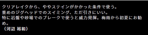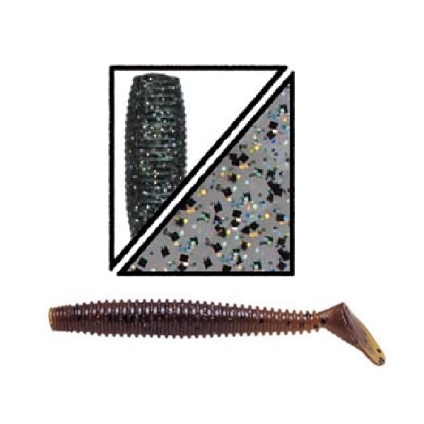 タフな状況下でも最後の最後までバスが反応するライブベイトに近い微弱ライブ系波動を放つレッグワームは、ボディの縦と横の異なるリブとバイブレーションテールで、バスにとって「食べたい!」と思わせる弱った小魚の動きを超リアルに再現します。