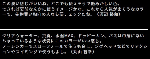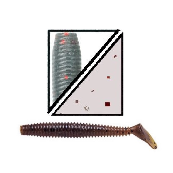 タフな状況下でも最後の最後までバスが反応するライブベイトに近い微弱ライブ系波動を放つレッグワームは、ボディの縦と横の異なるリブとバイブレーションテールで、バスにとって「食べたい!」と思わせる弱った小魚の動きを超リアルに再現します。