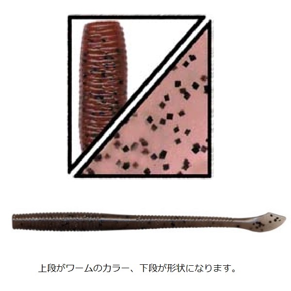優れたストレートワームの条件である水平ポジションの確保、ナチュラルなダートアクション、そしてミノーライクなシルエット、それらを高次元で満たしノーシンカー等のフィネスなアプローチでは、フィールドを選ばず抜群のポテンシャルを発揮します。