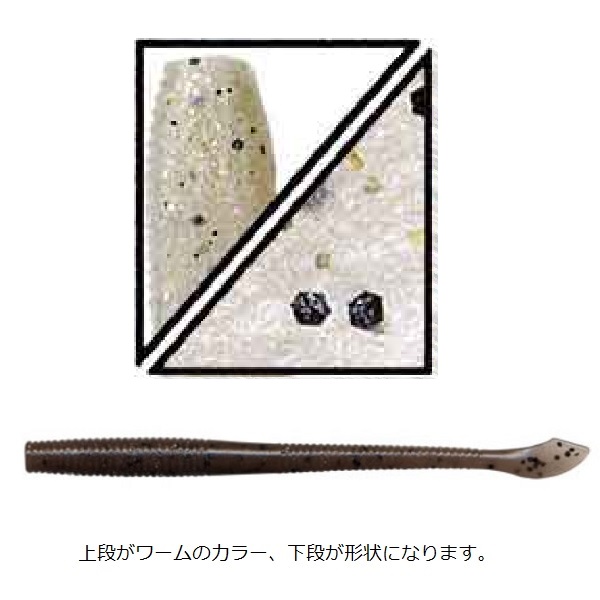 優れたストレートワームの条件である水平ポジションの確保、ナチュラルなダートアクション、そしてミノーライクなシルエット、それらを高次元で満たしノーシンカー等のフィネスなアプローチでは、フィールドを選ばず抜群のポテンシャルを発揮します。