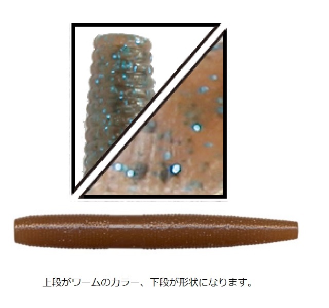 やや太めのボディは3インチながらもその存在感を確実にアピールします。ノーシンカーやジグヘッドリグ等にも相性がよく、ウェイトのあるソルティボディがロングアプローチも可能にし、 そのサイズを超えたポテンシャルを発揮します。※掲載している商品の画像は代表画像を表示しています。また実物と色が違って見える場合があります。あらかじめご了承下さい。