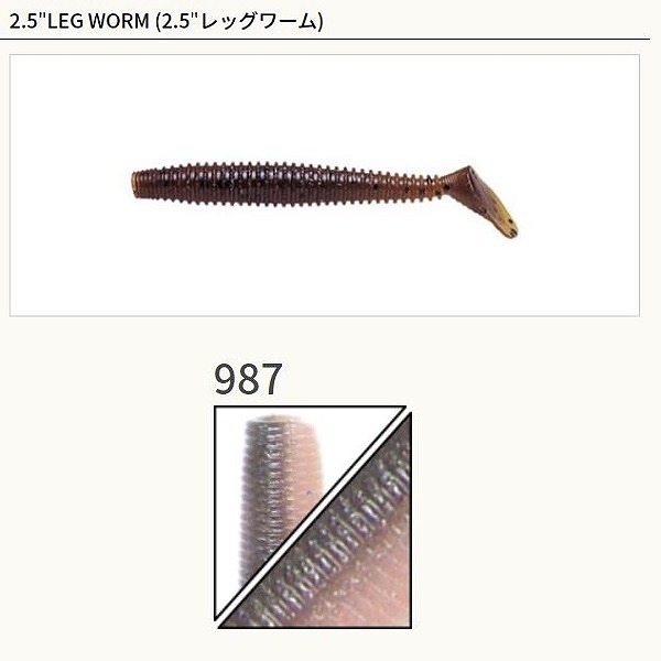 タフな状況下でも最後の最後までバスが反応するライブベイトに近い微弱ライブ系波動を放つレッグワームは、ボディの縦と横の異なるリブとバイブレーションテールで、バスにとって「食べたい!」と思わせる弱った小魚の動きを超リアルに再現します。フックサイズ#3のオフセットフック、もしくはマスバリで、ダウンショットリグやライトキャロライナリグ、ジグヘッドなどで使用する。日本全国のフィールドに対応したサイズ感で、季節を問わず使うことができる。※掲載している商品の画像は代表画像を表示しています。また実物と色が違って見える場合があります。あらかじめご了承下さい。