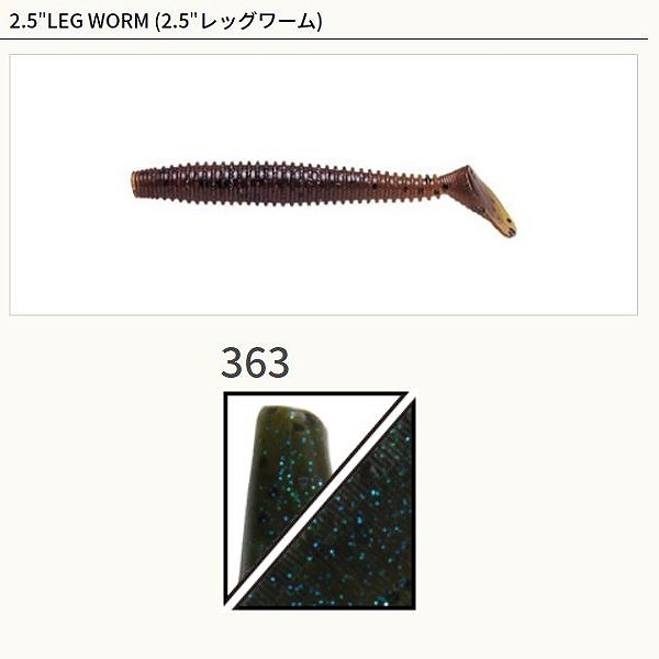 【ネコポス対象品】ゲーリーヤマモト 2.5インチ レッグワーム 363 グリーンパンプキン/ブラック&スモールブルーフレーク