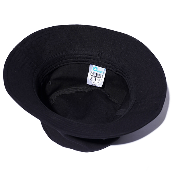 ブランドロゴの刺繍を施したバケットハット。海洋漂着ペットボトルごみを回収し資源化したリサイクルポリエステルとトルコオーガニックコットンを使用。(リサイクルポリエステルはUPDRIFT製) シンプルでどんなスタイリングにも「使える」1品です。