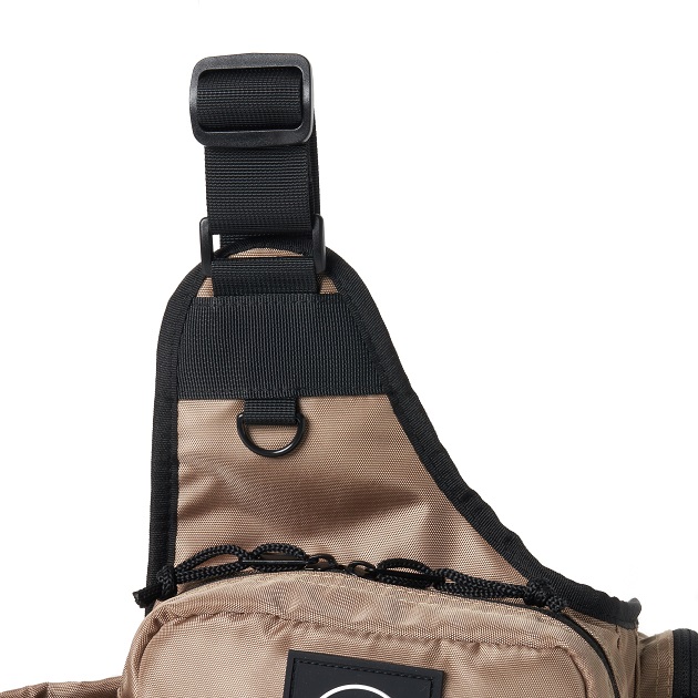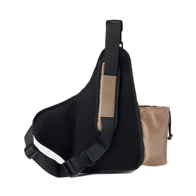 撥水機能生地を使用したボディバッグです。ポケットを多く配し、釣りなどのシーンからデイリーユースでの使用を想定したデザインとなっております。