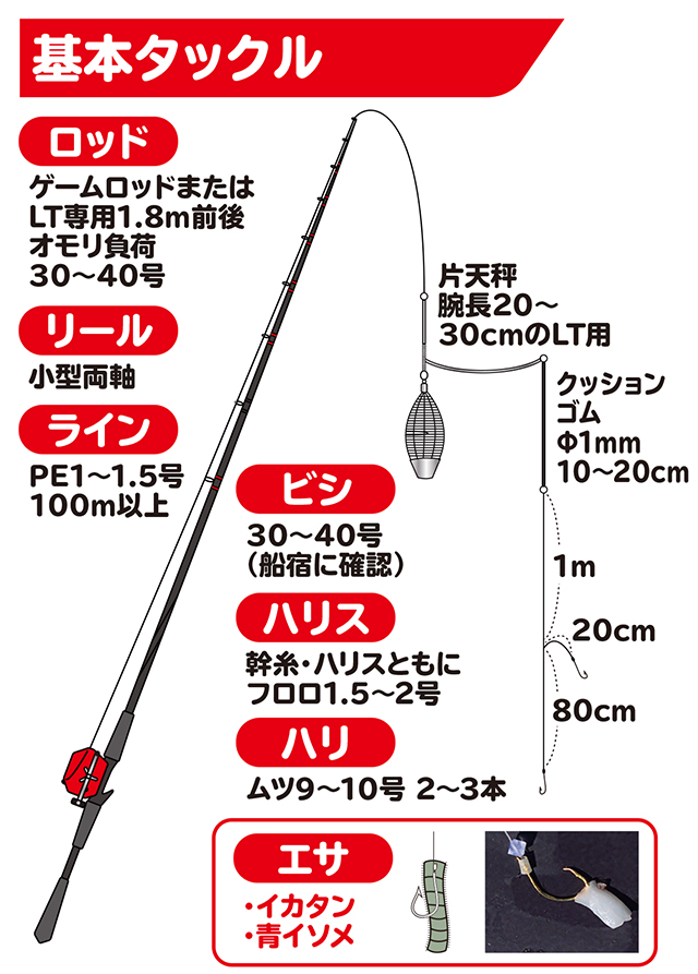 道糸PE1号前後、ミンチ用ビシ40号をご用意ください。