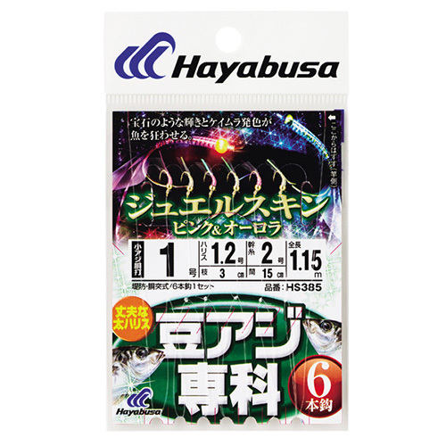 【ネコポス対象品】ハヤブサ HS385 豆アジ専科 ジュエルスキン ピンクオーロラ 太ハリス 2‐1.5