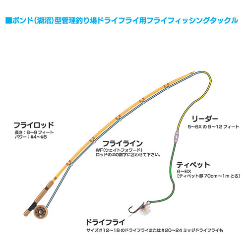 ・水温や日当たり具合など季節や時間帯などにより食いつきやすい毛ばりが違ってきます。その時に適したフライで釣りをします。
