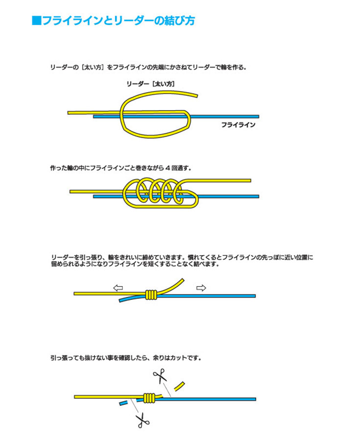 ※ダブルテーパー(先と元が同一のテーパーがかかったフライライン)のものが使いやすいでしょう。痛んできたら先端と元を逆にして使えるメリットもあります。