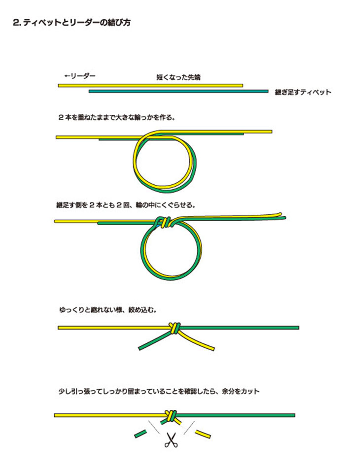 ※ティペットに合わせた「太さ」と流れの強さや複雑さに合わせた「長さ」のものを用意します。