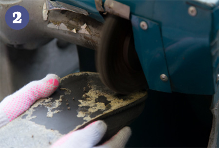 フェルトがはがれたらサンドペーパーなどで余分なフェルトやボンドを削ります。