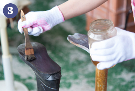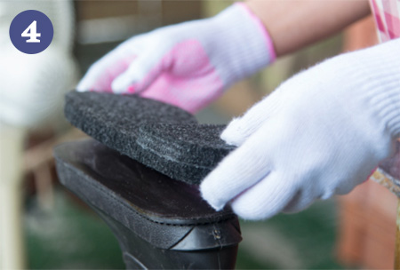 2度目のボンドは完全に乾かさず半乾きの状態でブーツとフェルトソールを接着します。